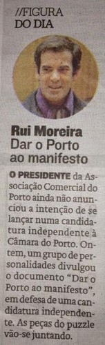 Não é minha intenção pronunciar-me sobre o processo autárquico em curso no Porto, nem sobre os candidatos que já se assumiram ou dos eventuais que ainda podem surgir.