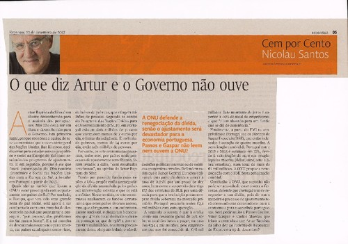 "Ricardo Costa (Expresso) "Eu, que escrevi várias vezes que seria quase impossível que Portugal regressasse aos mercados em 2013, reconheço sem qualquer problema que com estas regras Portugal está em condições de o fazer. Mais relevante, a estratégia negocial de Vítor Gaspar foi a correcta, sobretudo nos prazos em que jogou as suas cartas. Sempre sem forçar e sempre a aproveitar a terra firme que outros, sobretudo a Irlanda, iam pisando.""